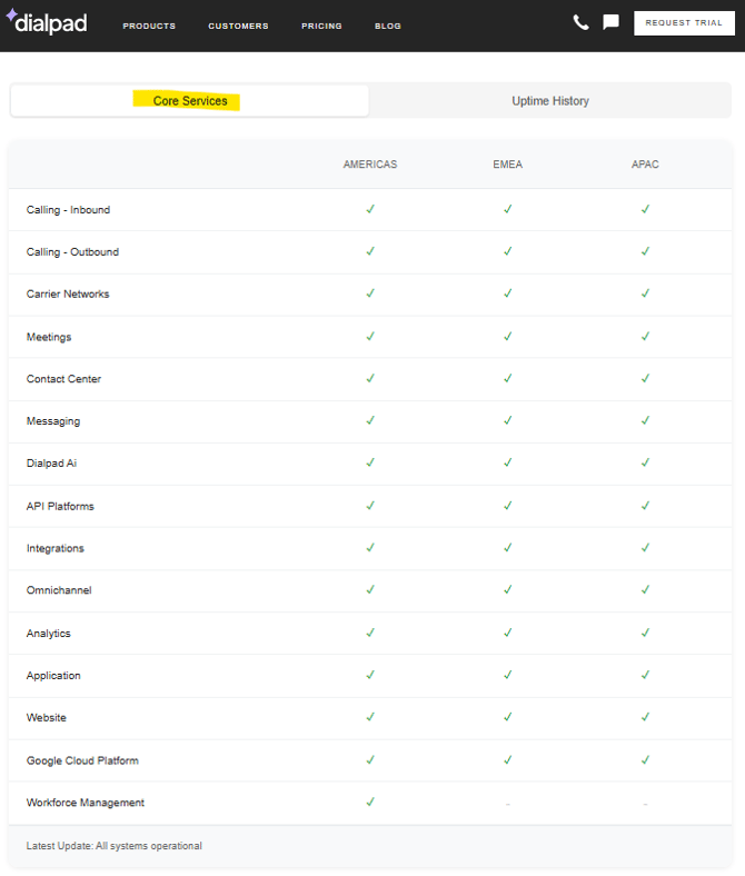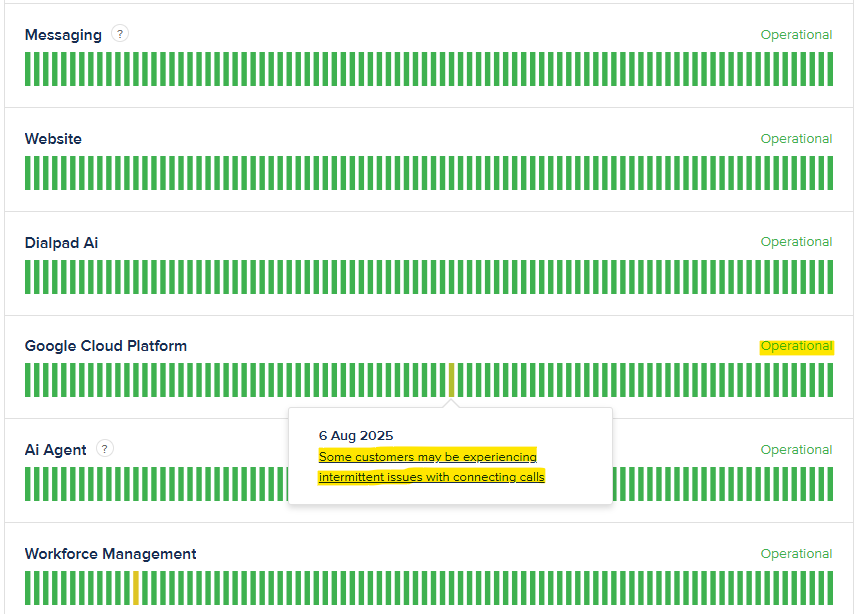 Dialpad Uptime Page: https://status.dialpad.com/uptime