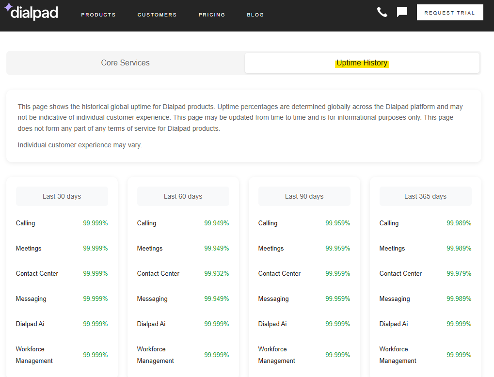 Dialpad Uptime History Tab