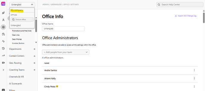 2. Select My Company from the drop down on the top left panel