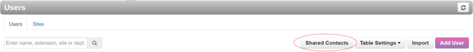 - On the Users page, navigate to the right-hand side and select Shared Contacts.